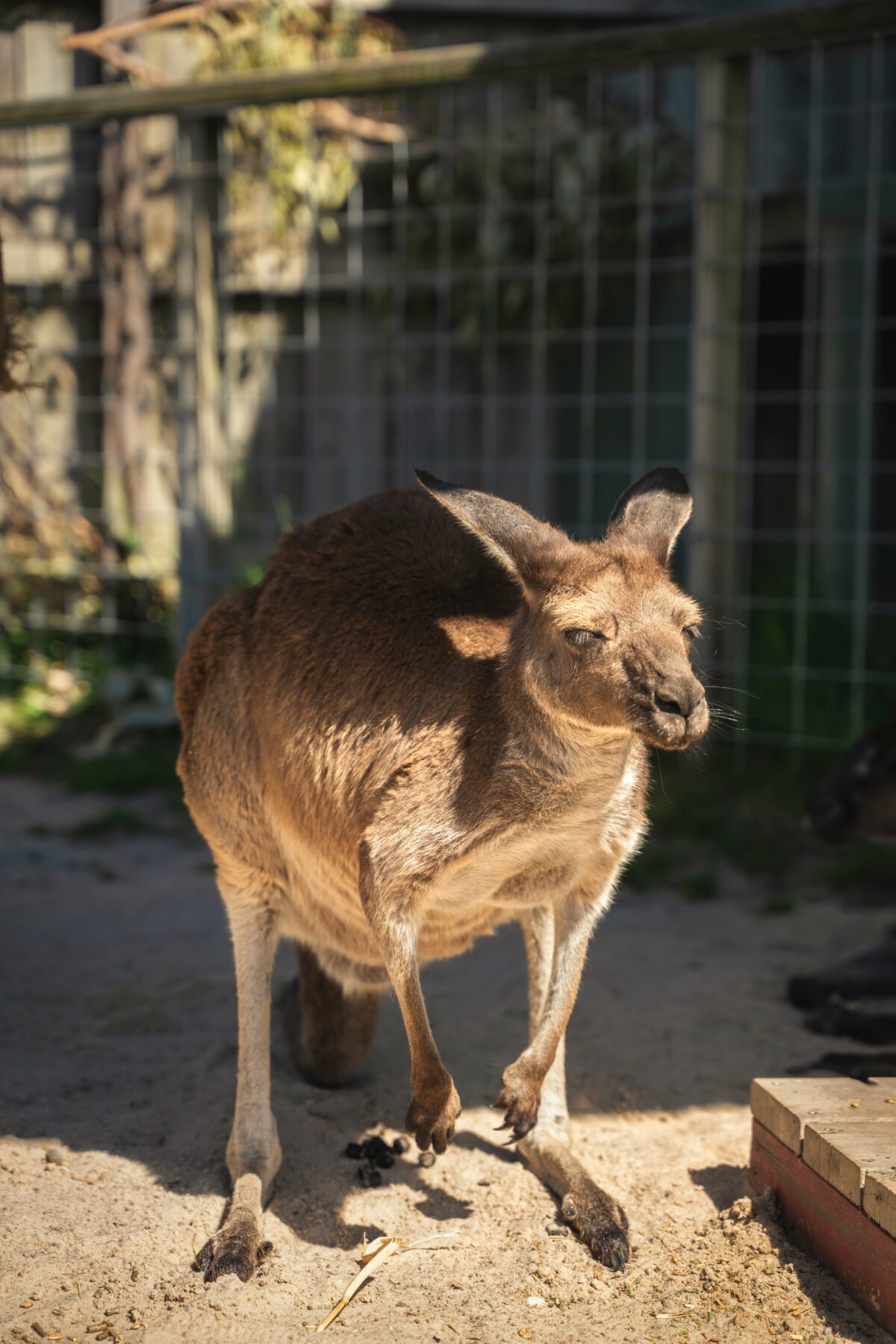 敷地内を自由に歩き回るカンガルーに会えるのもサンクチュアリの魅力。給餌体験(有料)ができる施設もあります。私たちは実際にカンガルーに触ることができました。想像以上に毛がふわふわで、子どもが大興奮!